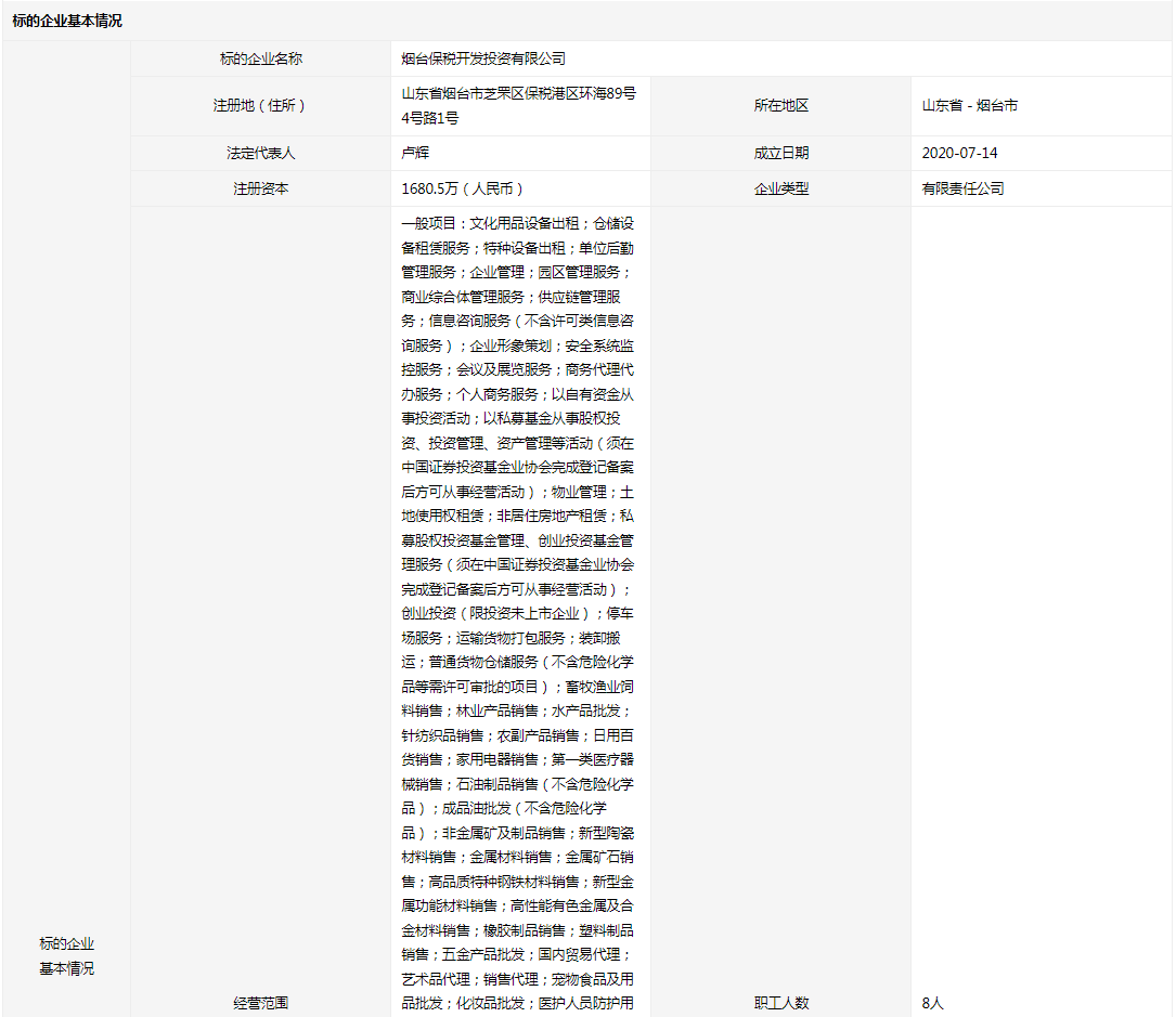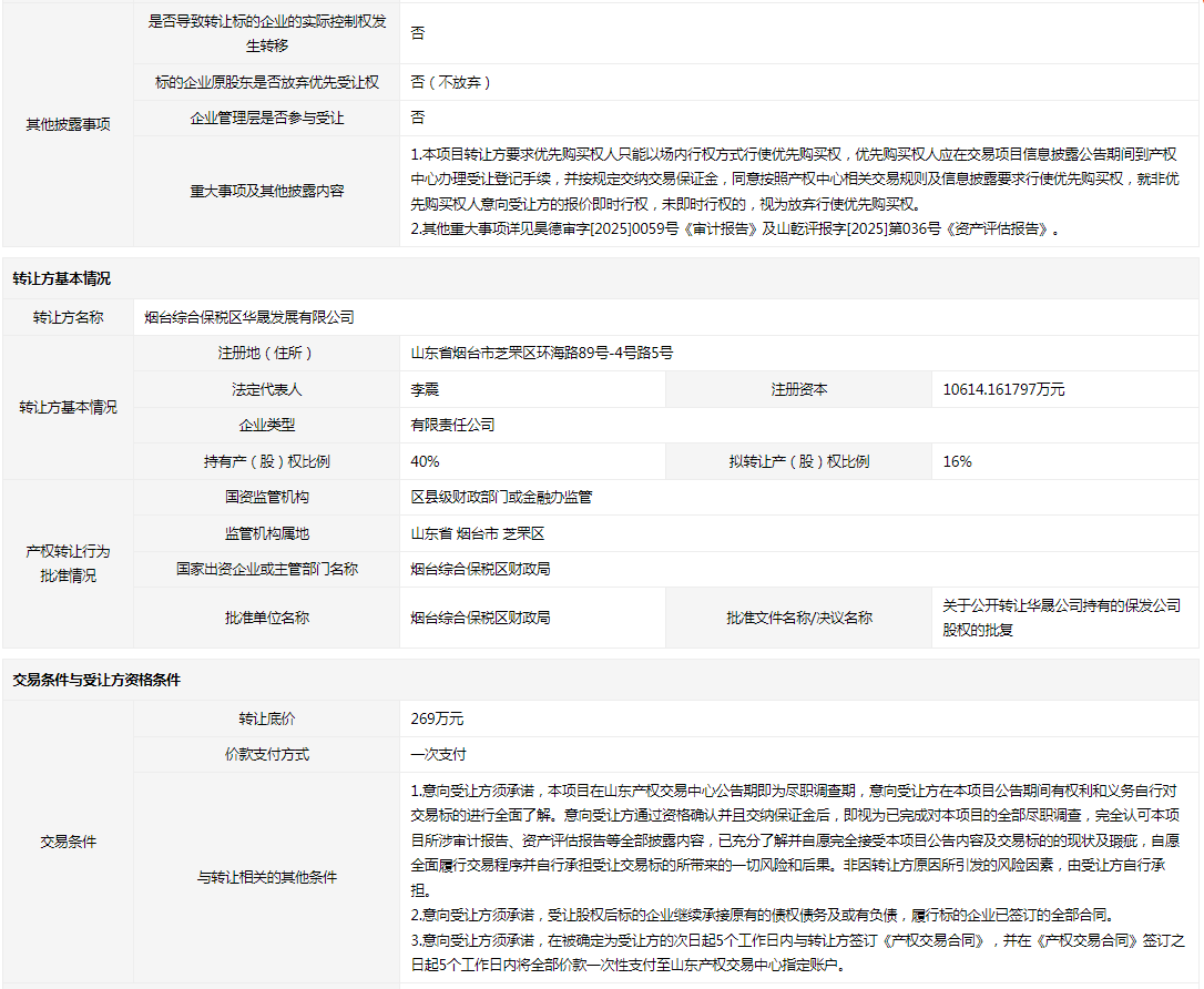煙臺(tái)保稅開發(fā)投資有限公司16%國有股權(quán)