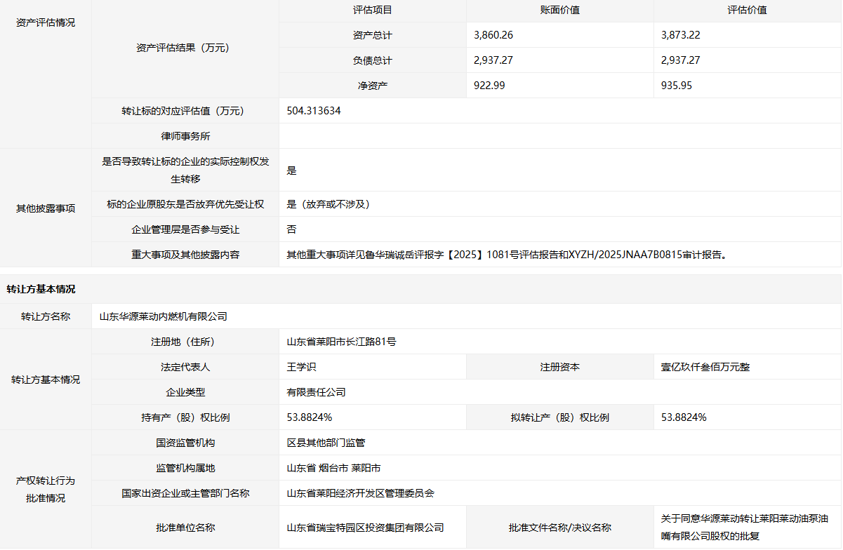 轉(zhuǎn)讓方: 山東華源萊動內(nèi)燃機(jī)有限公司
