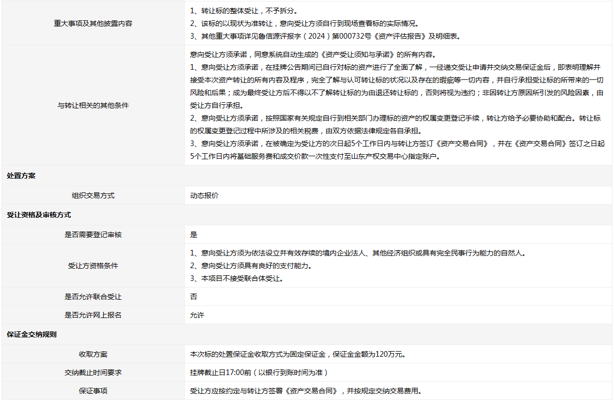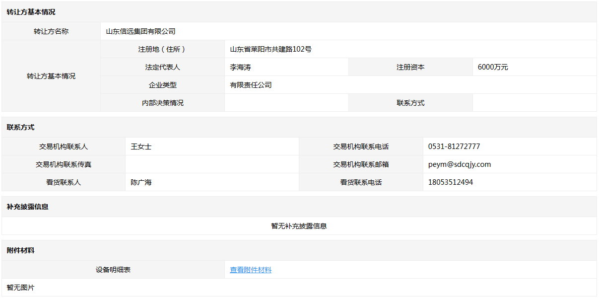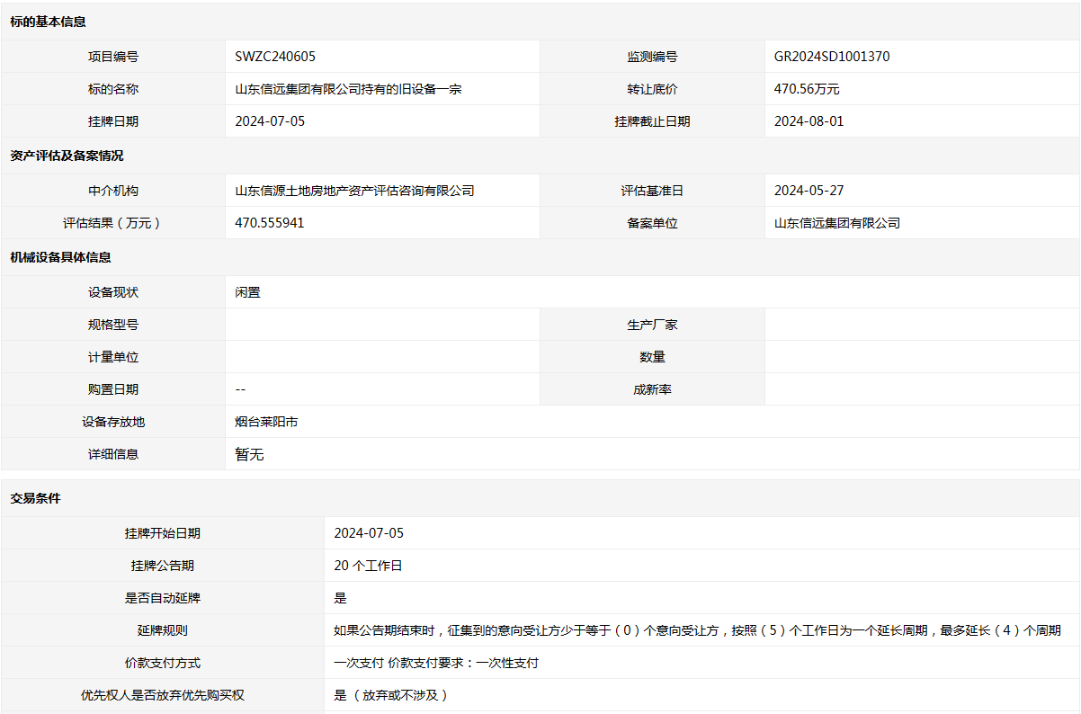 山東信遠集團有限公司持有的舊設(shè)備一宗