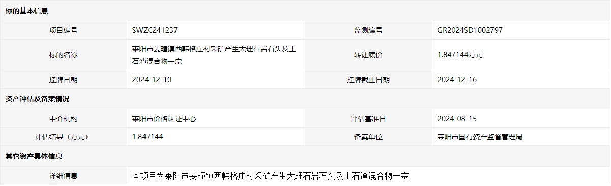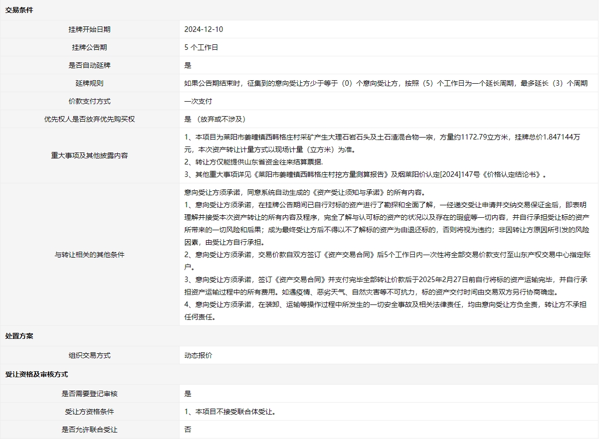 轉讓方:萊陽市自然資源和規(guī)劃局