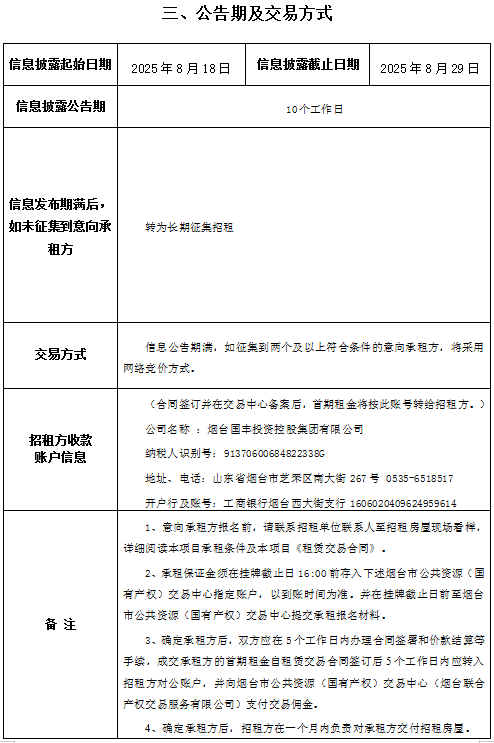 掛牌起止日期:2025年8月18日至2025年8月29日